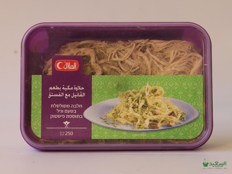 حلاوة شعر مكية الهلال – بطعم الفستق الحلبي والشوكوفانيلحلاوة شعر لذيذة وطريّة، متوفرة بطعمين مميزين: الفستق الحلبي الغني والشوكوفانيل الشهي. مثالية للتحلية مباشرة أو لإضافتها إلى الحلويات والمأكولات الشرقية، مع جودة موثوقة من الهلال.